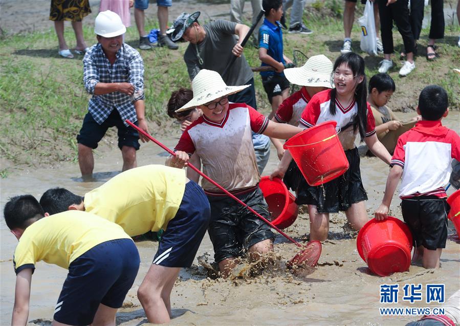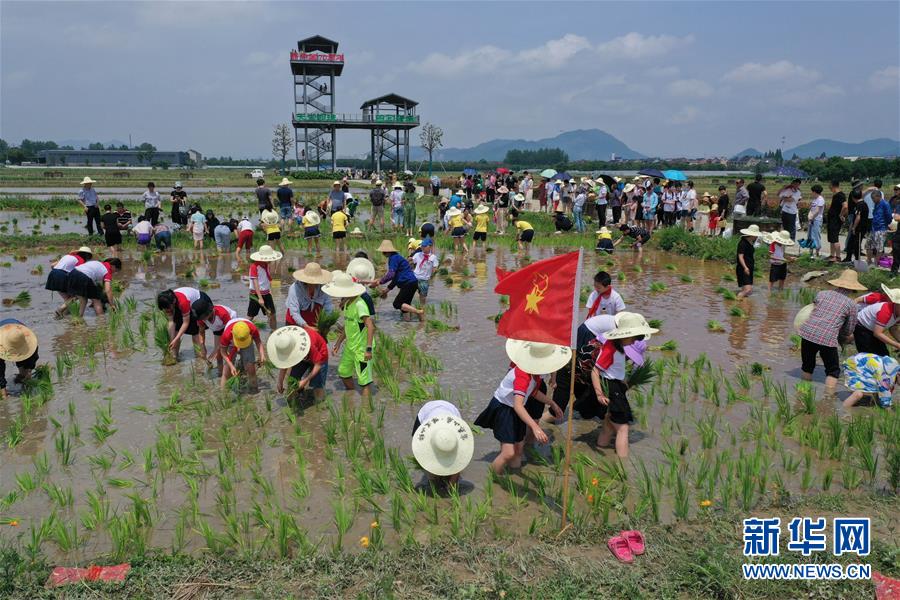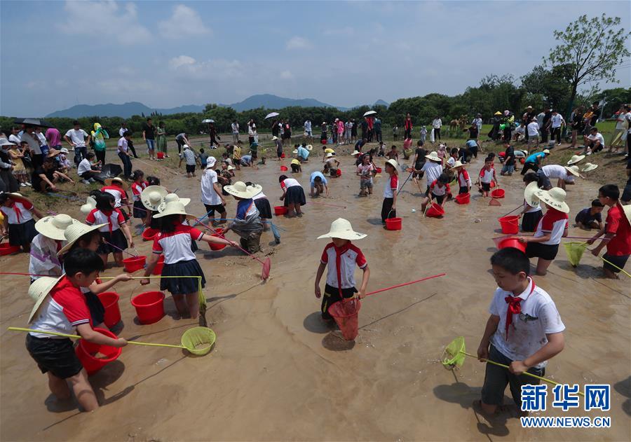 当日,在浙江省杭州市富阳区东洲街道红旗村的劳动教育实践基地,数百名中小学生与家长参加了趣味插秧和浑水摸鱼等活动,体验农事劳动。近年来,杭州市富阳区东洲街道红旗村致力打造农耕文化研学基地和新劳动教育基地,以寓教于乐的研学模式,让孩子们通过体验趣味农事活动,珍惜劳动成果。