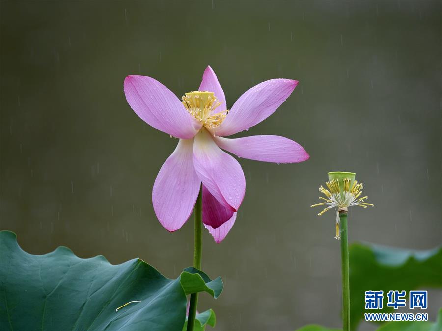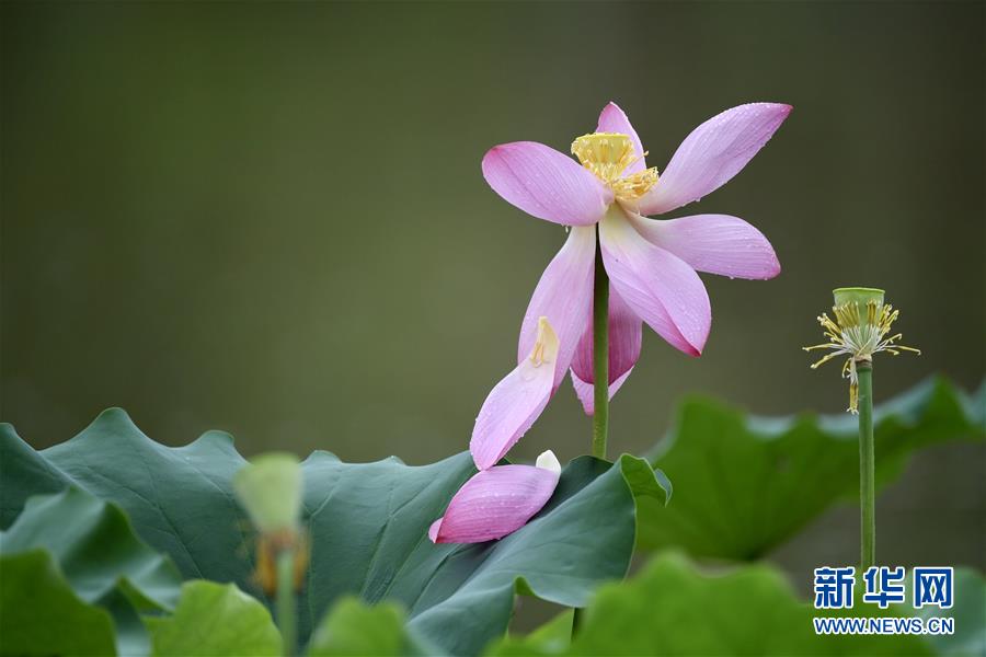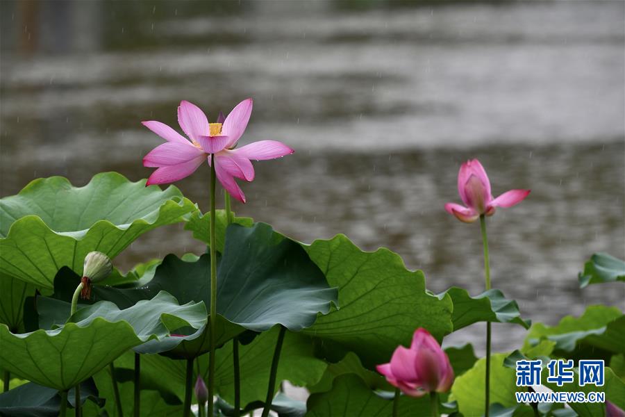 6月7日,一阵小雨过后,福州金山公园内盛开的荷花愈加娇艳欲滴。新华社记者姜克红摄