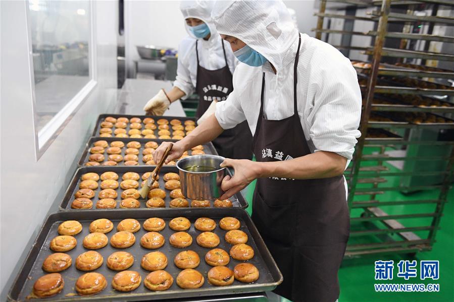 6月6日,云南曲靖市沾益区一家食品公司的工人在生产车间制作沾益小粑粑。沾益小粑粑是云南省曲靖市沾益区一种独具风味的特色食品,采用优质上等食材,经过20道工序精心制作而成,受到消费者欢迎。沾益小粑粑产业也带动当地农民实现增收。新华社记者杨宗友摄