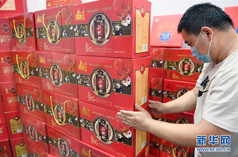 6月6日,云南曲靖市沾益区一家食品公司的工人在整理包装完成的沾益小粑粑。沾益小粑粑是云南省曲靖市沾益区一种独具风味的特色食品,采用优质上等食材,经过20道工序精心制作而成,受到消费者欢迎。沾益小粑粑产业也带动当地农民实现增收。新华社记者杨宗友摄