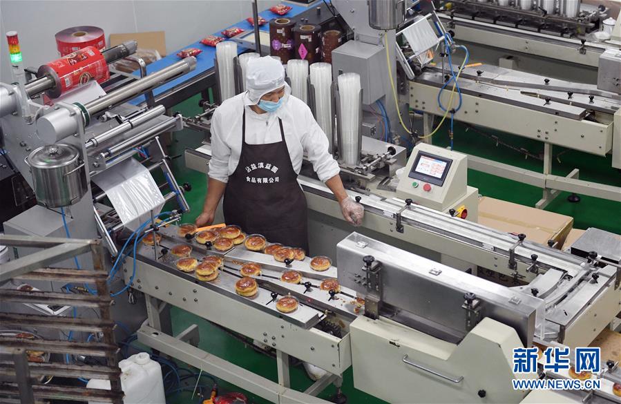 6月6日,云南曲靖市沾益区一家食品公司的工人在包装沾益小粑粑。沾益小粑粑是云南省曲靖市沾益区一种独具风味的特色食品,采用优质上等食材,经过20道工序精心制作而成,受到消费者欢迎。沾益小粑粑产业也带动当地农民实现增收。新华社记者杨宗友摄