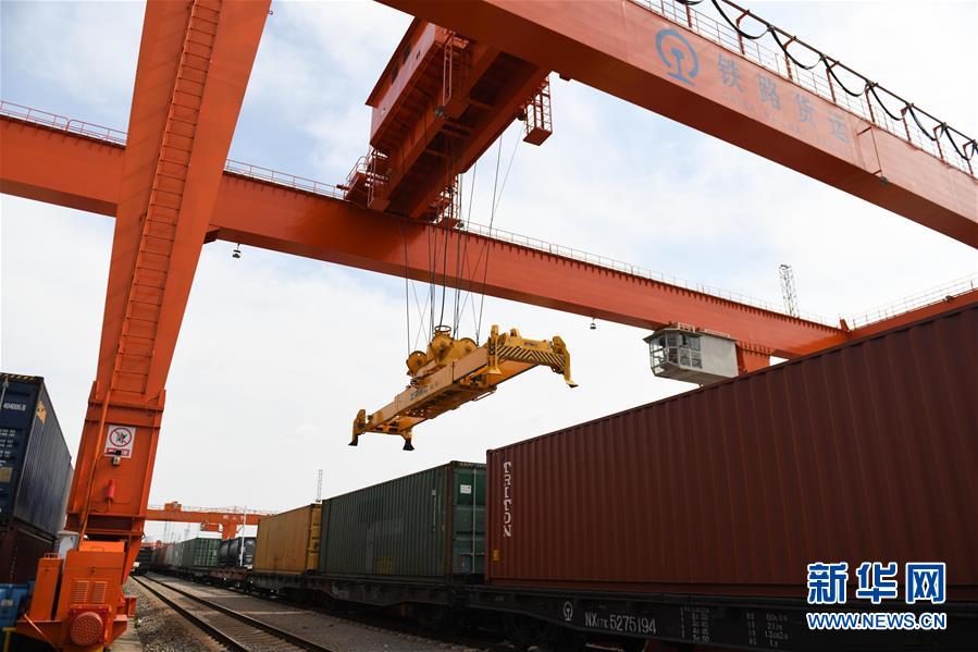 6月6日,在合肥北站物流基地,合肥首开至荷兰蒂尔堡的中欧班列进行发车前的准备工作。当日,搭载82个标准集装箱的中欧班列从中国铁路上海局集团有限公司合肥货运中心合肥北站物流基地驶出发往荷兰蒂尔堡,标志着合肥中欧班列通往荷兰蒂尔堡的线路正式开通。新华社记者张端摄