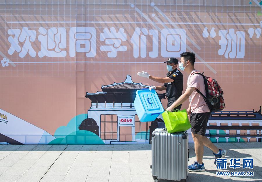 6月8日,在武汉大学,返校学生步入校园。6月8日起,武汉大学、华中科技大学、武汉理工大学、华中师范大学等多所武汉高校迎来首批返校毕业生。新华社记者肖艺九摄