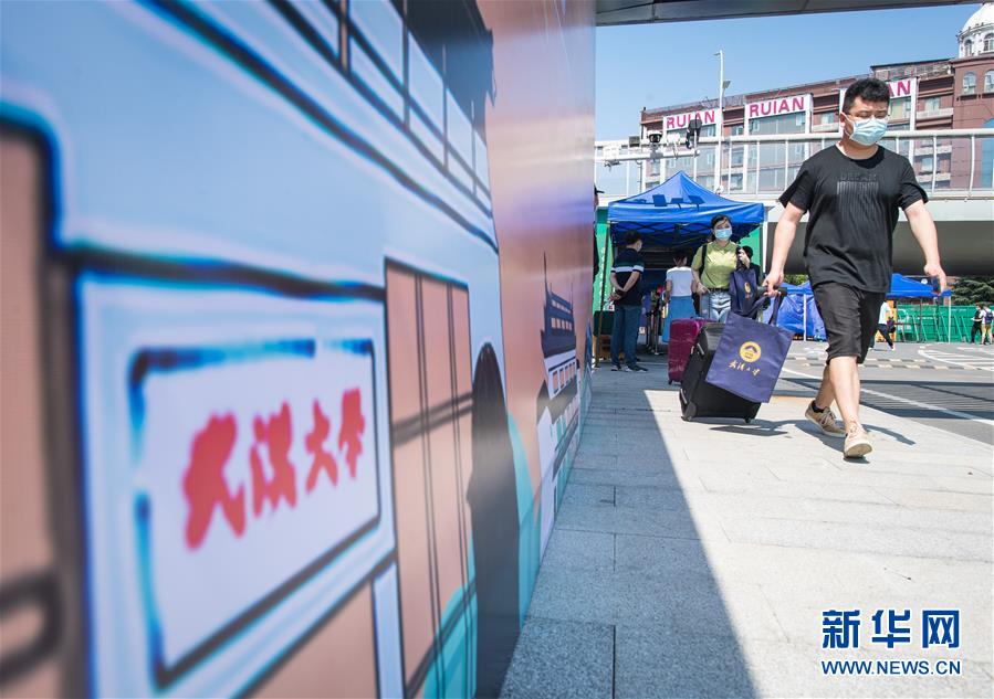 6月8日,在武汉大学,返校学生步入校园。6月8日起,武汉大学、华中科技大学、武汉理工大学、华中师范大学等多所武汉高校迎来首批返校毕业生。新华社记者肖艺九摄