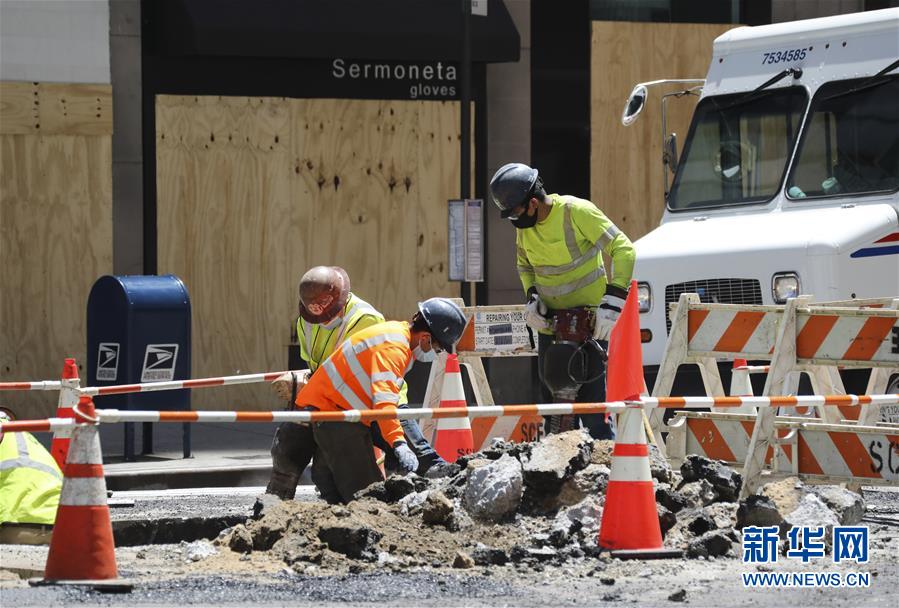 6月8日,工人在美国纽约的一处工地忙碌。在因新冠疫情进入“居家令”近三个月之后,美国纽约市于当地时间8日开始“解封”,进入经济重启的第一阶段。新华社记者王迎摄