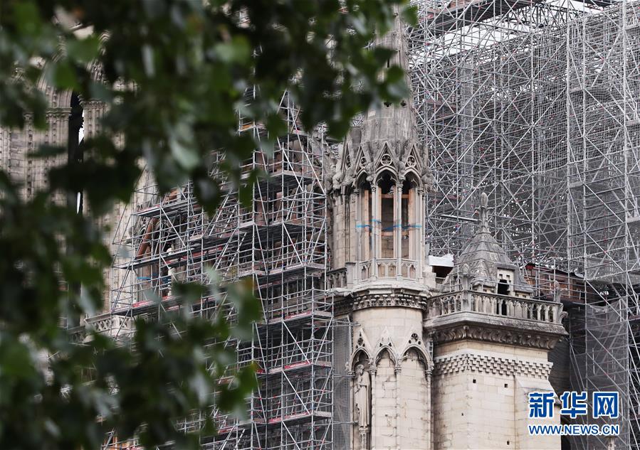 这是6月9日在法国巴黎拍摄的正在进行脚手架拆除工作的巴黎圣母院。法国巴黎圣母院于8日开始拆除去年大火中被焚的脚手架。作为巴黎圣母院修复工作的重要组成部分,这项工程预计将持续至少3个月。2019年4月15日,巴黎圣母院遭遇大火,当时圣母院正在进行维修,搭建的脚手架在火灾中损毁、变形。新华社记者高静摄