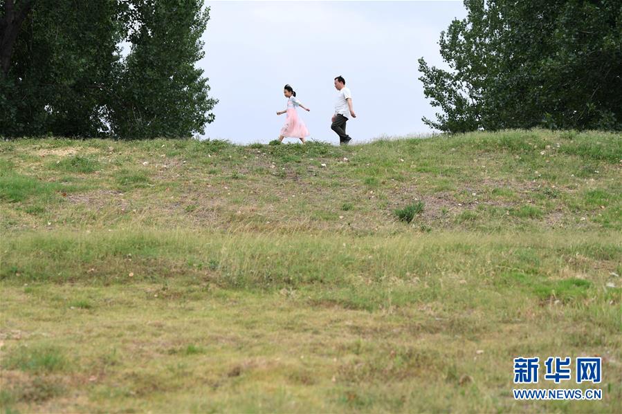 6月9日,楚思扬(左)和爸爸郑加卫一起散步。
