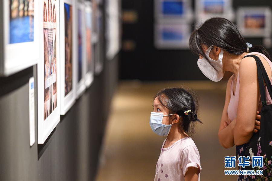 6月13日,观众在位于海口的海南省博物馆观看“地球谐音——世界文化遗产摄影艺术展”。新华社记者蒲晓旭摄。