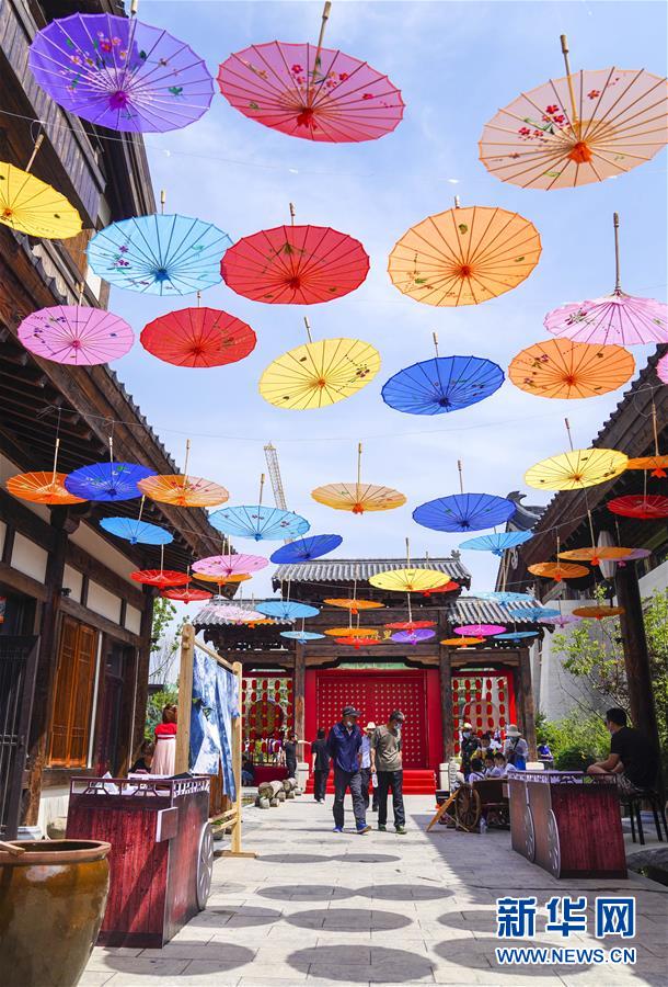 6月13日,市民在长春市世茂莲花山小镇宽厚里商街参观游览。当日是“文化和自然遗产日”。吉林长春首届莲花山消夏生活节在世茂莲花山小镇举行。活动将非遗展示与假日消暑休闲相结合,让游人在“古色古香”的油纸伞巷中品传统文化魅力,享夏日休闲惬意。新华社记者许畅摄。