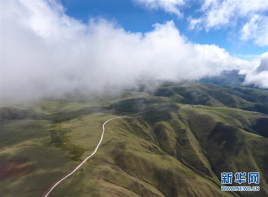 这是6月13日无人机航拍的“上南天路”和路边的牧民居所。居住在路边的牧民,因为有了这条路,出行更加方便。新华社记者 沈伯韩 摄