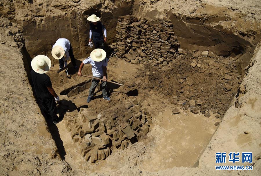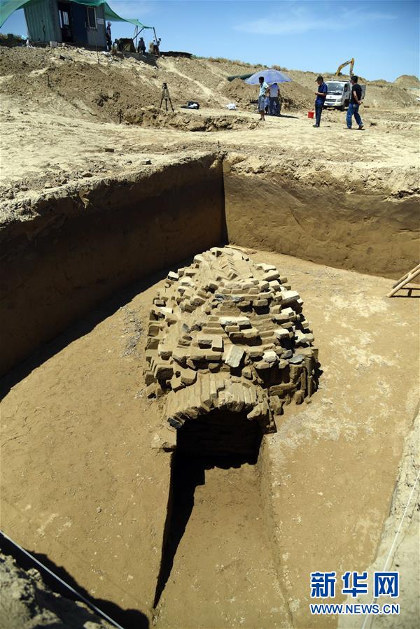 这是6月14日拍摄的山东小清河章丘段考古发掘现场。近日,济南市考古研究所考古工作队在对小清河章丘段进行考古调查和勘探时,发现了13座年代集中在北朝末期至唐朝初期的古墓。新华社记者 王凯 摄