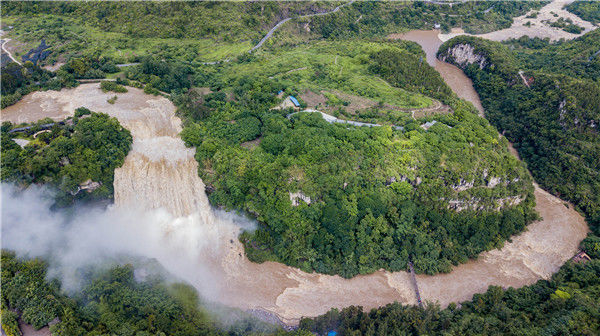 2019年6月8日,贵州安顺,黄果树瀑布进入丰水期。