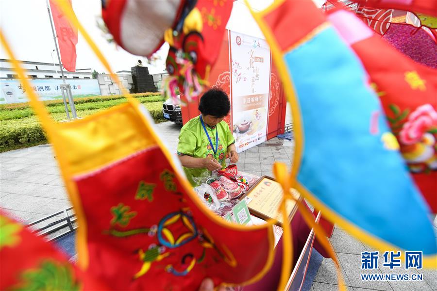 6月13日,非遗传承人在非遗大集上制作绣花鞋。新华社记者 季春鹏 摄