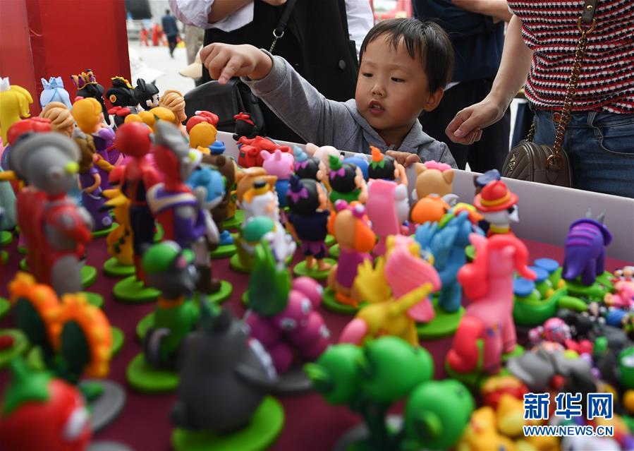 6月13日,小朋友在非遗大集上观看面塑作品。新华社记者 季春鹏 摄