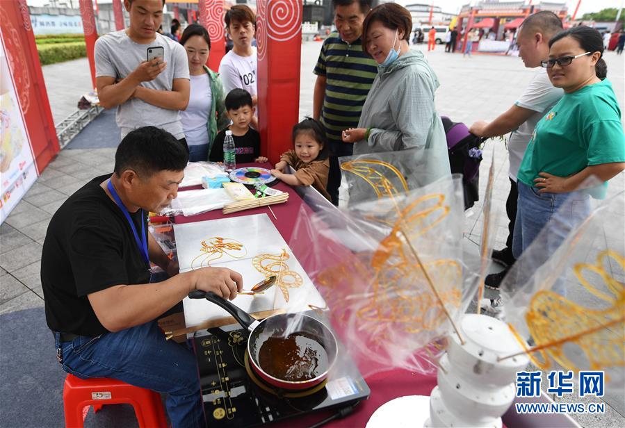 6月13日,非遗传承人在非遗大集上制作糖画。新华社记者 季春鹏 摄