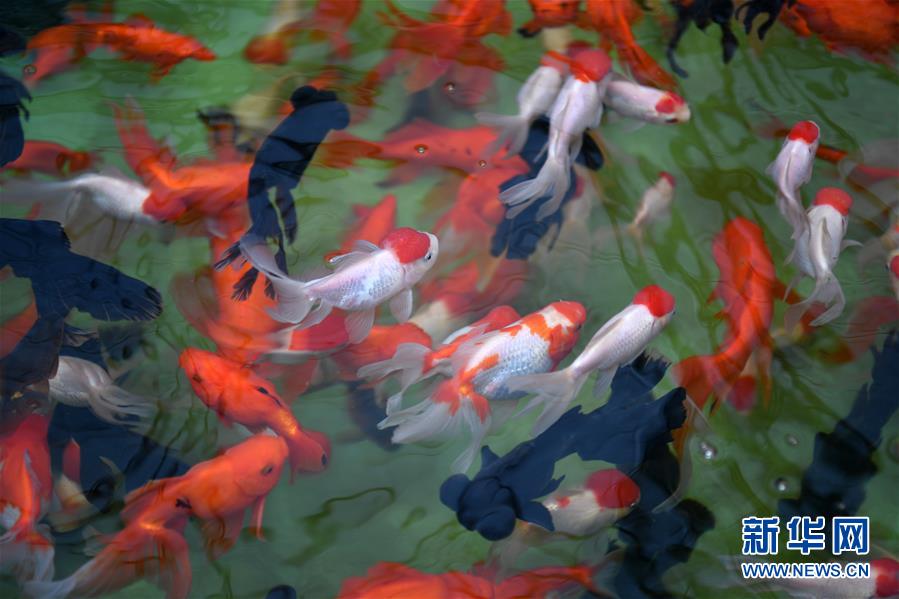 在天津现代晨辉科技集团有限公司的养殖示范场,工人在投喂饲料(6月15日摄)。近年来,天津市宝坻区大白庄镇大力发展观赏鱼养殖,在当地龙头企业的带动下,成为增加农民收入的新途径。据了解,企业对附近养殖户统一提供苗种、饲料、技术支持,以及观赏鱼成鱼后保价回收的服务。养殖户每亩水面平均收入约1.8万元,解决周边农民就业近200人。新华社记者 李然 摄