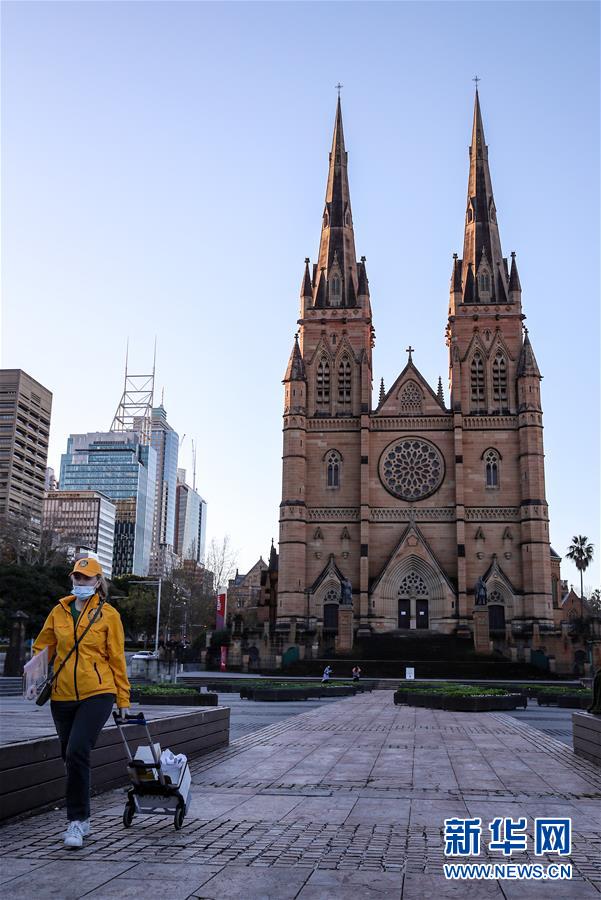 6月16日,市民从澳大利亚悉尼的圣玛丽大教堂前走过。