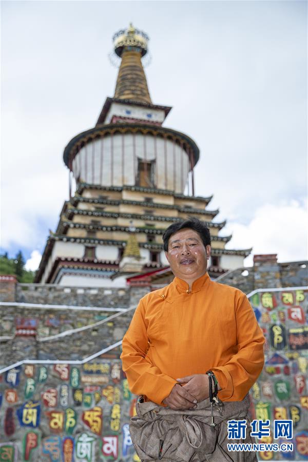 这是在四川省阿坝藏族羌族自治州壤塘县棒托石刻公园拍摄的石刻传习所所长班玛罗尔吾(6月13日摄)。新华社记者 沈伯韩 摄