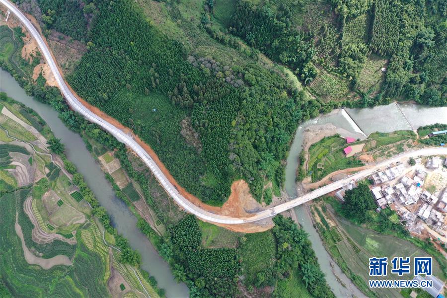 正在建设的百坭村二级公路(6月17日摄,无人机照片)。