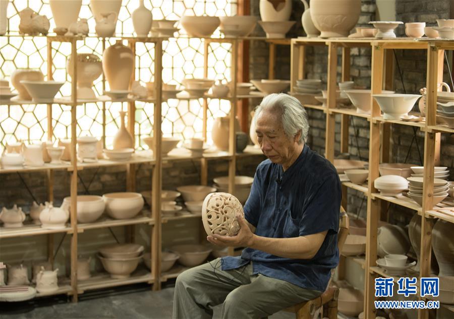 6月17日,在位于浙江慈溪的工作室,闻长庆查看一件素烧后的熏炉盖。新华社记者 翁忻旸 摄