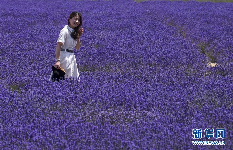 游客在霍城县解忧公主薰衣草园内游玩(6月16日摄)。新华社记者 赵戈 摄