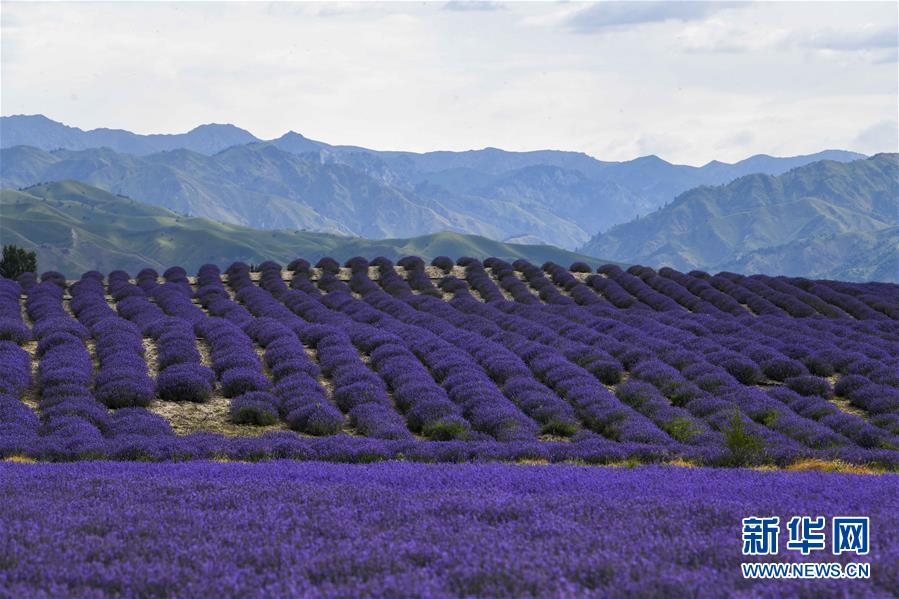 这是霍城县芦草沟镇四宫村的一处薰衣草花田(6月16日摄)。新华社记者 赵戈 摄