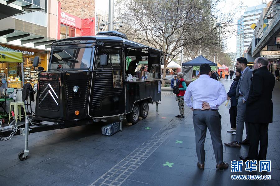 6月19日,人们在澳大利亚悉尼查茨伍德镇的咖啡餐车前等候。新华社记者白雪飞摄
