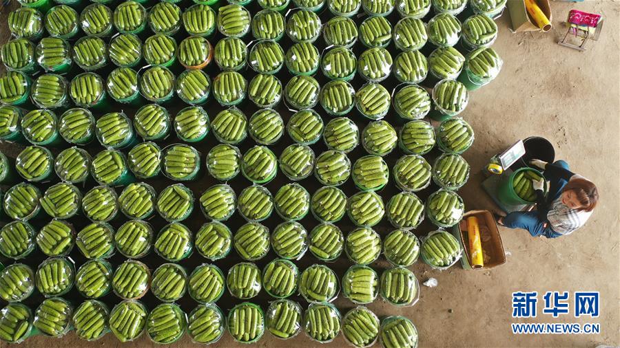 6月21日,滦州市小马庄镇老海种植农民专业合作社的员工在打包黄瓜。近年来,河北省滦州市积极调整农业产业结构,鼓励当地合作社和农户发展果蔬种植,丰富当地农产品种类,越来越多的农民依靠“果园子”“菜篮子”鼓起了“钱袋子”。新华社记者牟宇摄