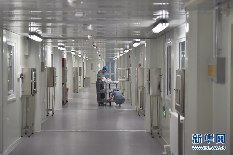 6月19日,在北京地坛医院隔离病房外,护士在给病人发药。新华社记者彭子洋摄