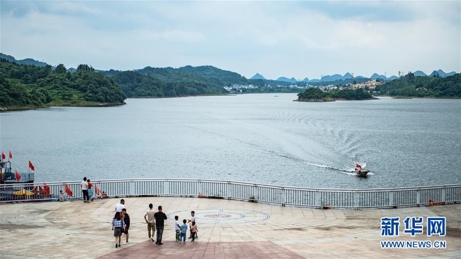 6月21日,游客在红枫湖景区游玩。夏至时节,贵州省清镇市红枫湖景区草木苍翠,秀丽的湖光山色吸引不少游客前来游玩。新华社记者陶亮摄