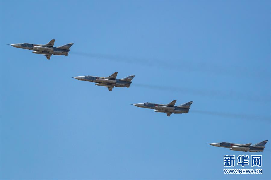 6月20日,在俄罗斯首都莫斯科,苏-24M战斗轰炸机编队参加阅兵式彩排。俄罗斯将于6月24日举行纪念卫国战争胜利75周年阅兵式。新华社记者白雪骐摄