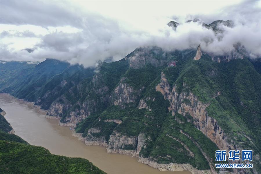 这是6月21日在重庆市巫山县拍摄的雨后巫峡,两岸碧山如画,云雾缭绕在其间(无人机照片)。新华社记者黄伟摄