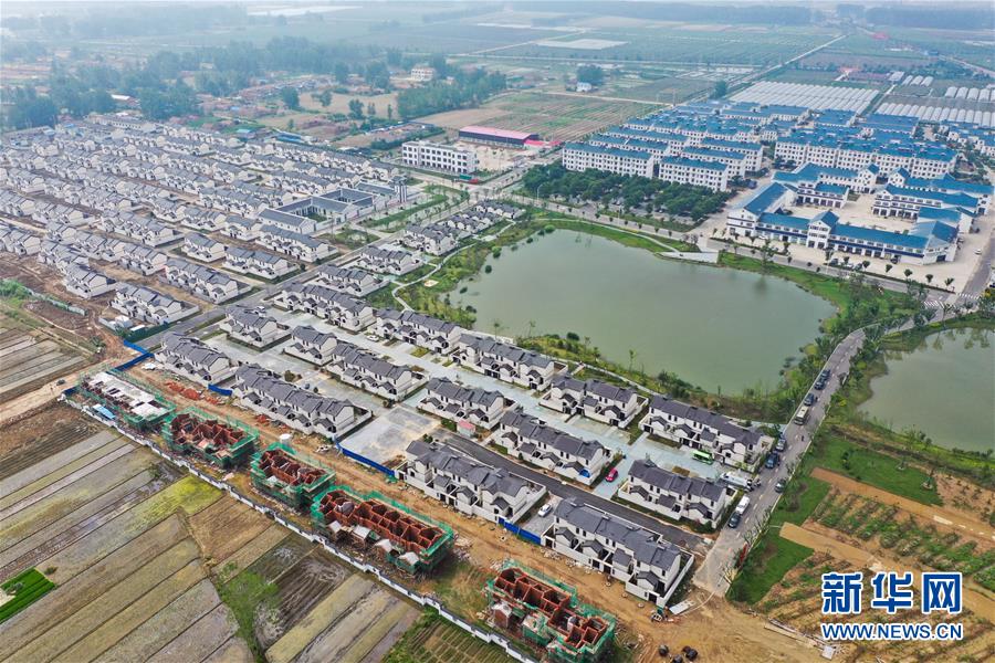 6月20日拍摄的泗阳县爱园镇松张口社区(无人机照片)。近年来,江苏省宿迁市泗阳县大力推进农房改善工作,提高群众生活品质。爱园镇松张口社区农房改善项目将公共空间治理与农房改善工作相结合,抓好建筑质量的同时,注重小区整体环境建设,打造风景如画的新农村。新华社记者季春鹏摄