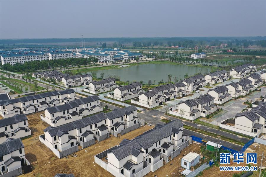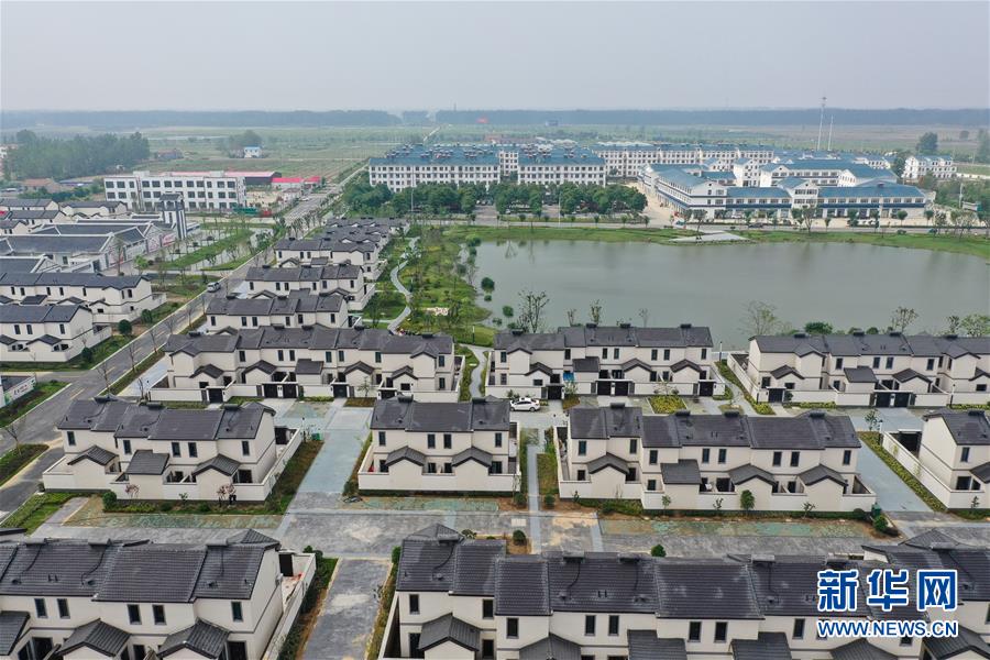 6月20日拍摄的泗阳县爱园镇松张口社区(无人机照片)。近年来,江苏省宿迁市泗阳县大力推进农房改善工作,提高群众生活品质。爱园镇松张口社区农房改善项目将公共空间治理与农房改善工作相结合,抓好建筑质量的同时,注重小区整体环境建设,打造风景如画的新农村。新华社记者季春鹏摄