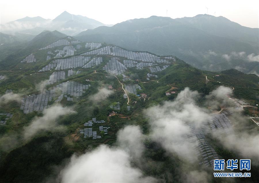 这是金寨县桃岭乡高湾村的茶产业扶贫和光伏扶贫项目(6月20日无人机照片)。新华社记者张端摄