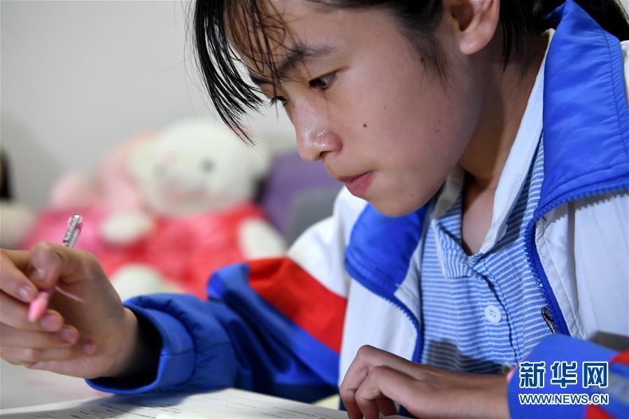 6月19日,蔡齐艳在家里做作业。新华社记者刘军喜摄