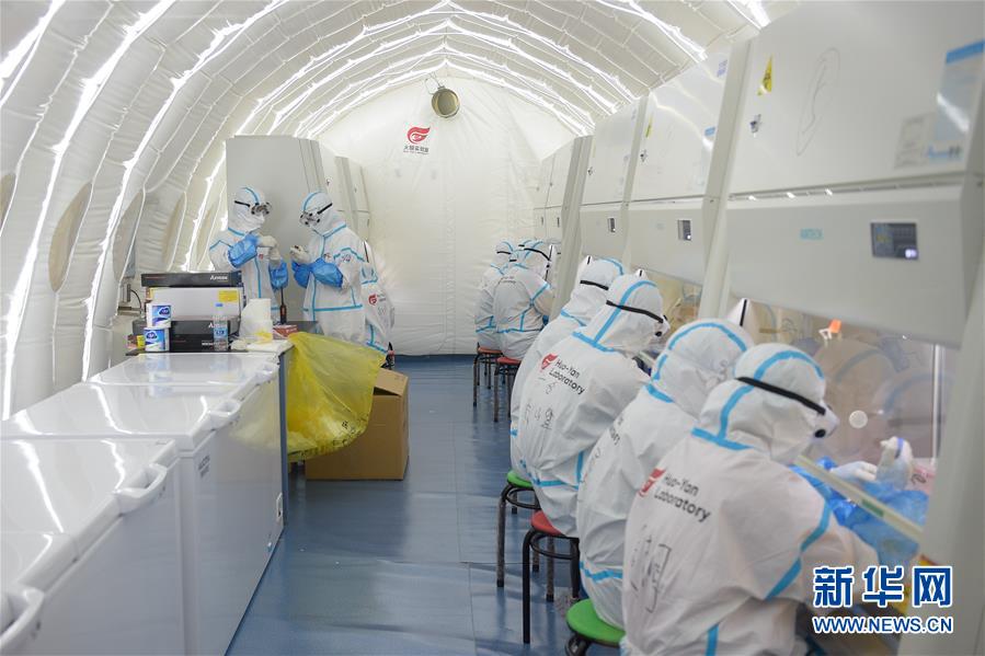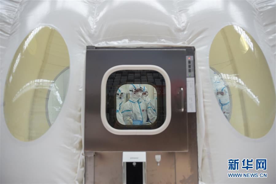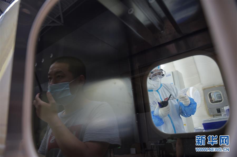 6月22日拍摄的建在北京大兴体育中心综合馆的气膜版“火眼”核酸检测实验室。新华社记者彭子洋摄