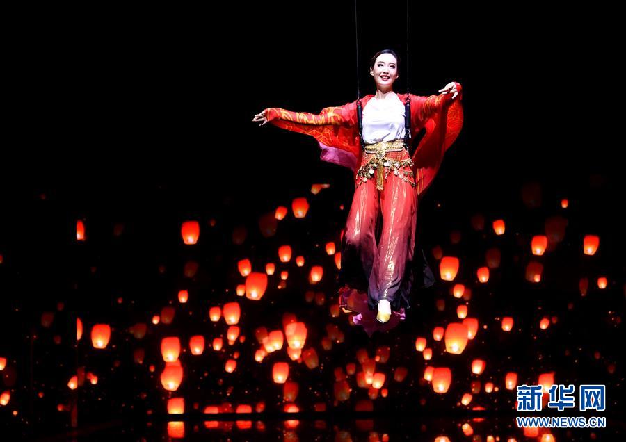 6月22日拍摄的《西安千古情》演出现场。大型舞台剧《西安千古情》22日在西安浐灞世博园首演。该剧以一位华裔少女归国寻根为故事主线,浓缩展现了古城西安的悠久历史文化。新华社记者张博文摄