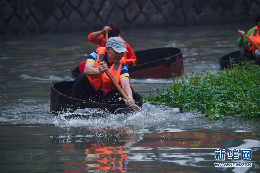 6月23日,东林镇村民在泉心村荷花池参加端午划菱桶趣味活动。当日,浙江省湖州市东林镇在泉心村荷花池举办“庆端午划菱桶”趣味活动。村民们划着菱桶在水面上你追我赶,同时采收荷花和莲蓬,呈现出水乡特有的端午节日氛围。在河网密布的东林镇,菱桶是水乡家家户户都有的一种传统水上劳动工具,村民在捕鱼、采菱、采荷时都要用到。新华社记者徐昱摄