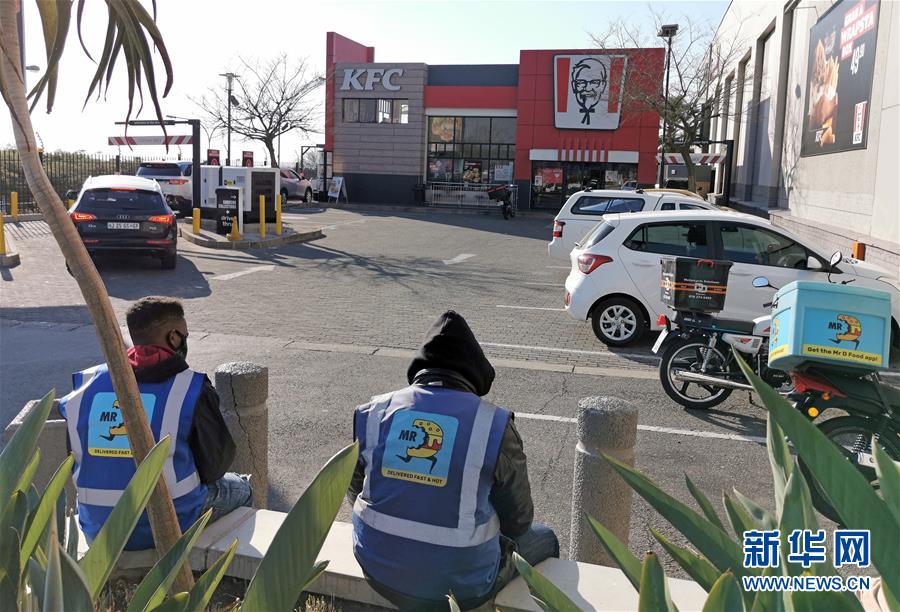 6月22日,外卖配送员坐在南非约翰内斯堡一家快餐店外休息。南非卫生部22日说,过去24小时该国新增确诊病例4288例,累计确诊101590例,占非洲大陆确诊总数约三分之一;累计死亡1991例。南非的单日新增确诊病例已连续多天保持在4000例以上。新华社记者陈诚摄