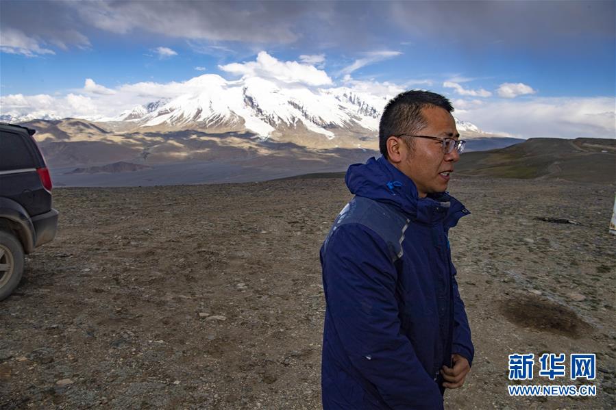 到达慕士塔格观测站后,冷风袭来,冯国杰穿上冲锋衣,拉上拉链(6月15日摄)。新华社记者胡虎虎摄