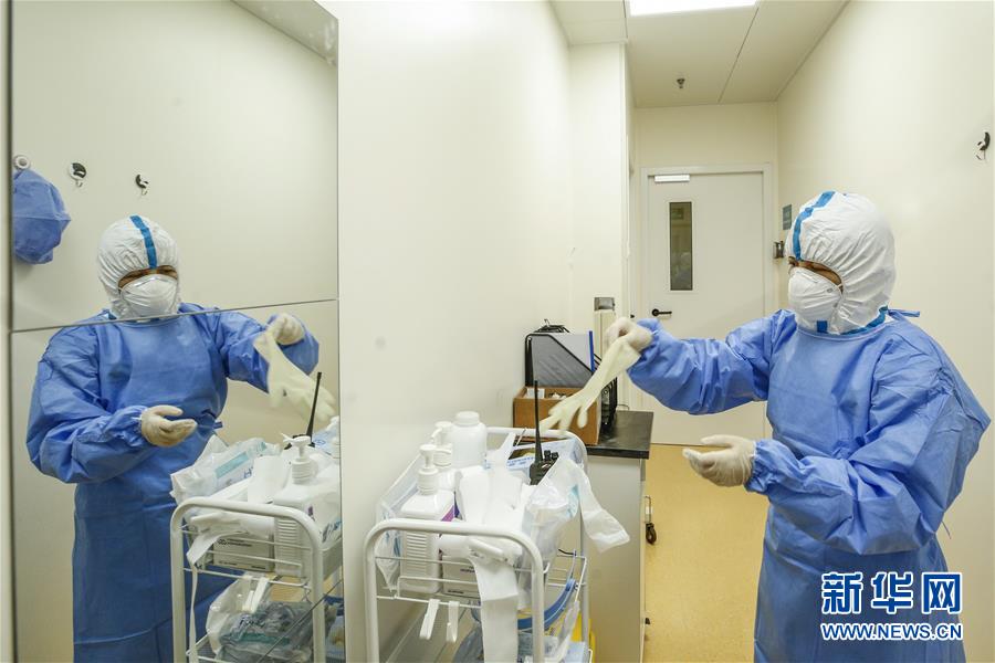 6月23日,检验人员在进入污染区前穿戴防护装备。6月15日,北京市普仁医院PCR实验室正式启用,并立即投入到新冠肺炎病毒核酸检测工作之中,为新冠肺炎疫情防控增添利器。普仁医院PCR实验室启用以来,除了来自本院发热门诊、门急诊、病房和核酸检测采样点的样本之外,还承接了社区以及东城区集中核酸检测点采集的部分样本。新华社记者张玉薇摄
