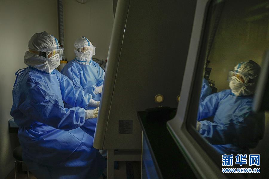 6月23日,两位检验人员在实验室内工作。6月15日,北京市普仁医院PCR实验室正式启用,并立即投入到新冠肺炎病毒核酸检测工作之中,为新冠肺炎疫情防控增添利器。普仁医院PCR实验室启用以来,除了来自本院发热门诊、门急诊、病房和核酸检测采样点的样本之外,还承接了社区以及东城区集中核酸检测点采集的部分样本。新华社记者张玉薇摄