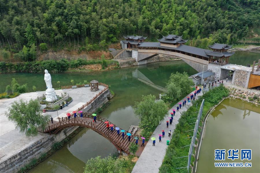 6月24日,福建政和县外屯乡群众在湖屯村举行走桥活动(无人机照片)。当日,福建省政和县举行第三届中国·屯福桥端午民俗文化节。端午节临近,各地举行包粽子、做香包、赛龙舟等丰富多彩的民俗文化活动,迎接传统佳节的到来。新华社记者林善传摄