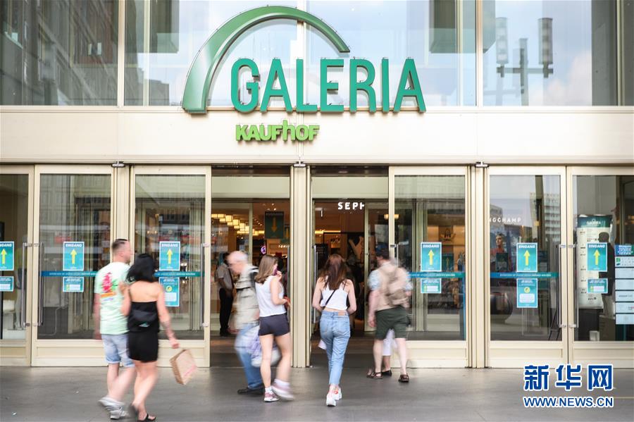 6月27日,在德国首都柏林,人们走进一家商场。新华社记者单宇琦摄