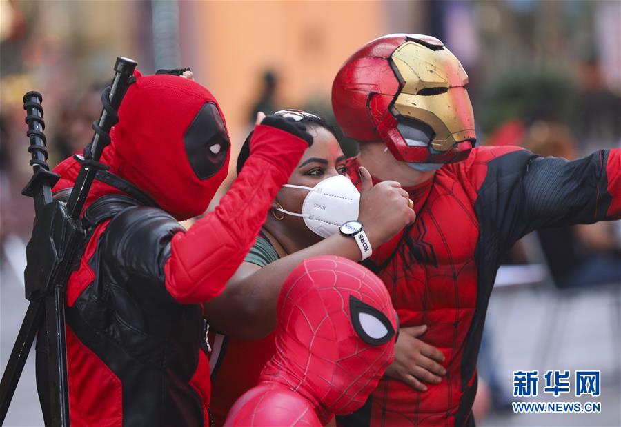 6月27日,在美国纽约时报广场,一名游客与角色扮演者合影。美国约翰斯·霍普金斯大学27日发布的新冠疫情最新统计数据显示,截至美国东部时间27日16时35分(北京时间28日4时35分),美国累计新冠确诊病例2500419例,累计死亡病例125434例。新华社记者王迎摄