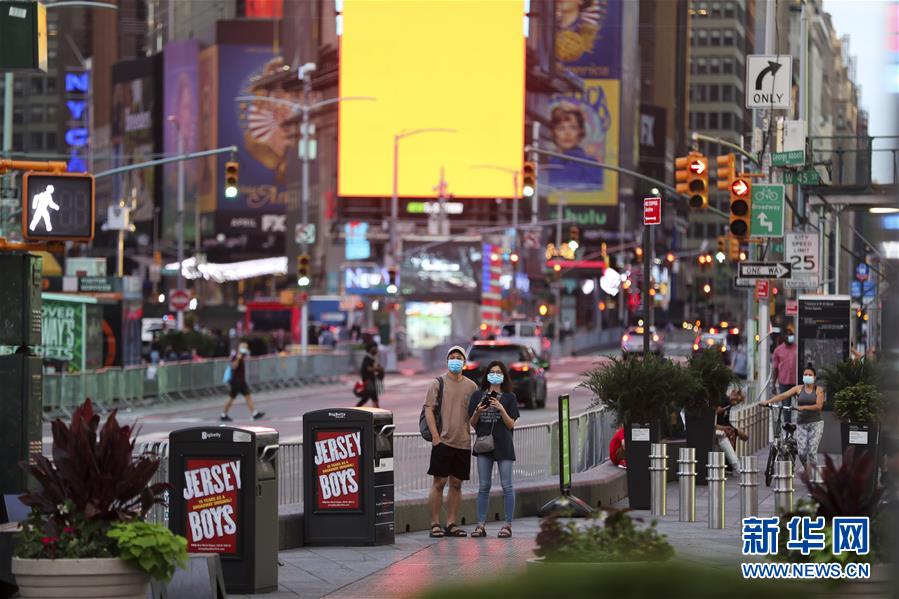6月27日,人们在美国纽约时报广场观光。美国约翰斯·霍普金斯大学27日发布的新冠疫情最新统计数据显示,截至美国东部时间27日16时35分(北京时间28日4时35分),美国累计新冠确诊病例2500419例,累计死亡病例125434例。新华社记者王迎摄