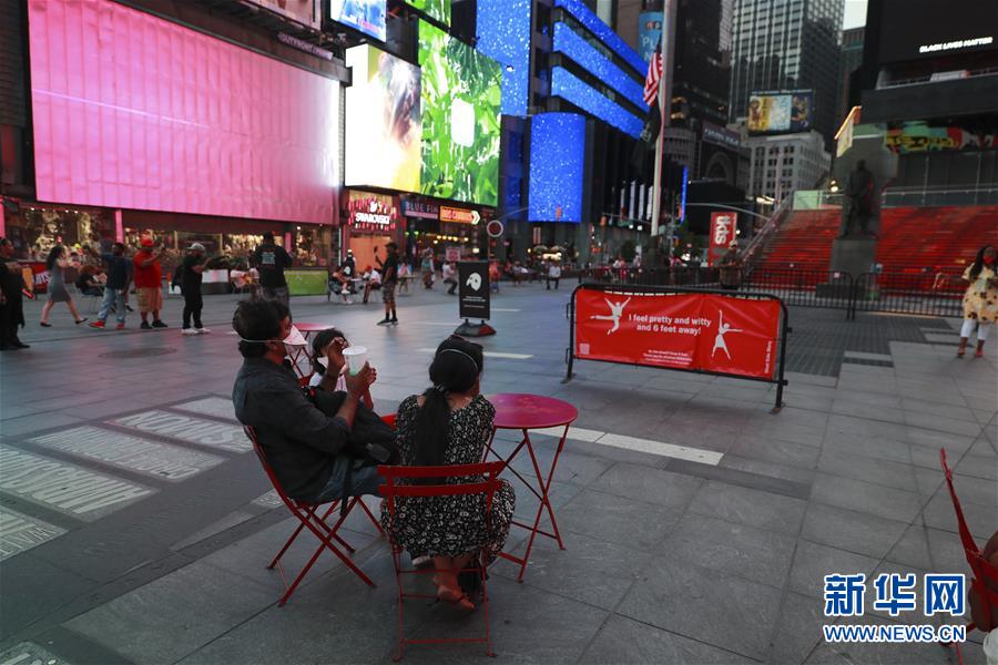 6月27日,人们在美国纽约时报广场的公共休闲区休息。美国约翰斯·霍普金斯大学27日发布的新冠疫情最新统计数据显示,截至美国东部时间27日16时35分(北京时间28日4时35分),美国累计新冠确诊病例2500419例,累计死亡病例125434例。新华社记者王迎摄