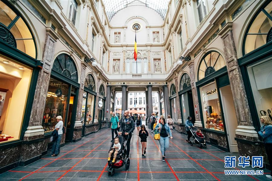 6月28日,游客在比利时布鲁塞尔圣于贝尔长廊游览。近日,随着欧盟国家间逐步开放边境,比利时布鲁塞尔游客逐渐增多。新华社记者张铖摄