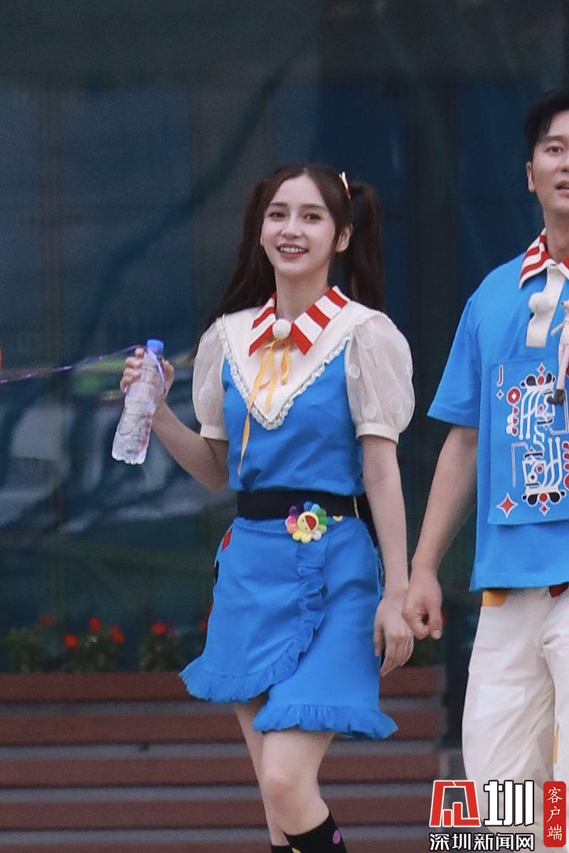 杨颖(angelababy)穿蓝色背带裙扎双马尾清新可爱